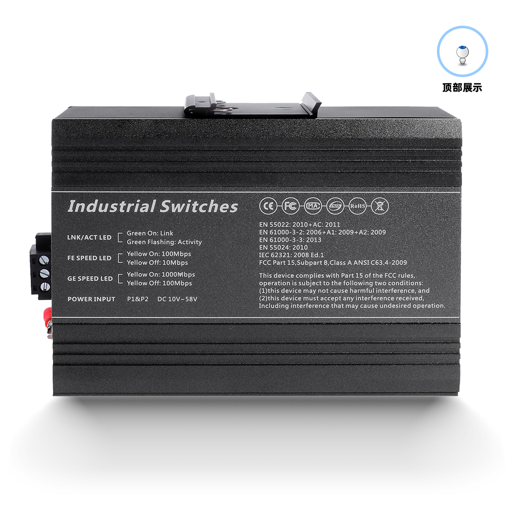 This device is 5*10/100/1000Base-T Industrial Ethernet Switches. Through the fanless heat dissipation circuit design, wide range of working environment temperature, high protection level and other technologies, it provides excellent industrial quality with high/low temperature resistance and lightning protection, and enhances the reliability and safety of industrial networks. It can better meet the deployment requirements of rail transit, safe city, intelligent transportation, outdoor monitoring and other harsh environments.